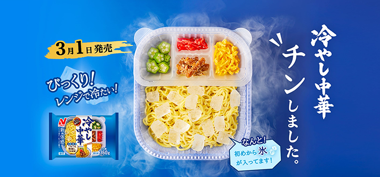 冷凍技術といえば、こんなニュースも... なんと、レンジで冷たく仕上がる新製法を活用した「冷やし中華、チンしました。」(ニチレイ)が発売になるというのです。