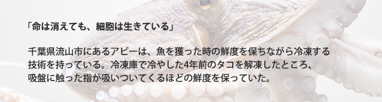 テーマは「鮮度」。例えば、冷凍した食品を解凍したときに流れ出るドリップ、ここに食品のうまさが詰まっているわけですが、このドリップを逃さずに新鮮な味を保つ冷凍技術はどのようなものなのでしょうか?