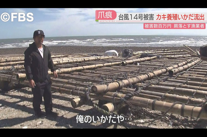 九州に上陸した台風14号の影響が続いています。福岡県豊前市の宇島漁港で、カキの養殖用に使われていた、いかだが流される被害が起きています。...