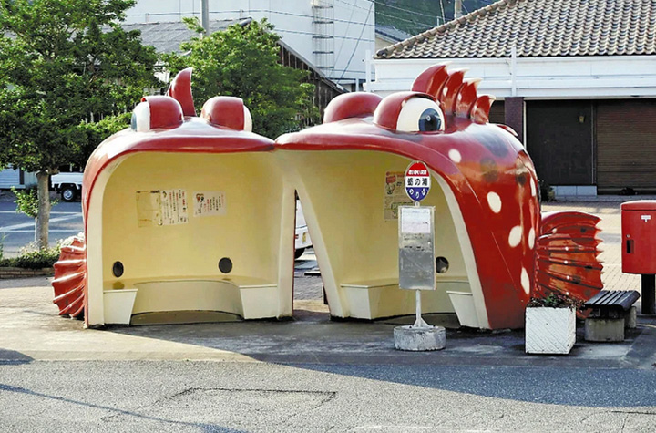謎めいた「お魚バス停」に多くの観光客、なぜか紛れている「マダイ」